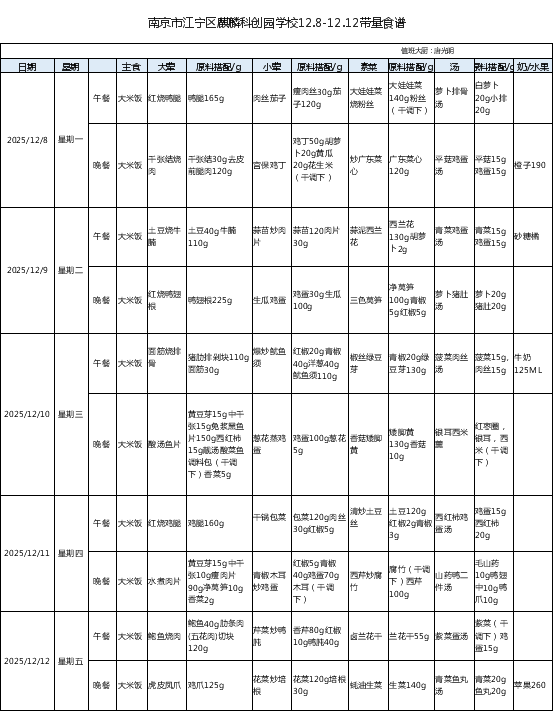 麒麟科创园学校25-26第一学期第十五周食谱