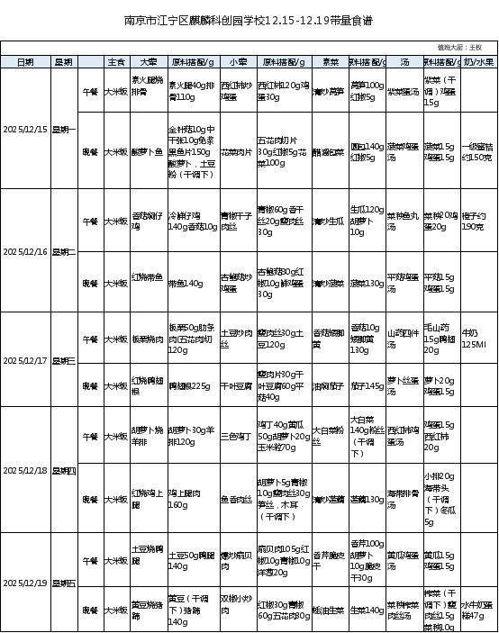 麒麟科创园学校25-26学年第一学期第十六周菜谱
